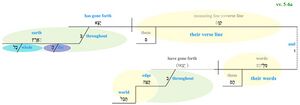 This illustrates reference point movement (as in the story) and absence of movement (as in the description), as shown in the parentheses of “and (then)” and “and (at the same time).” The significance of reference point movement (and lack of movement) can become very significant when making sense of larger sections or whole psalms.